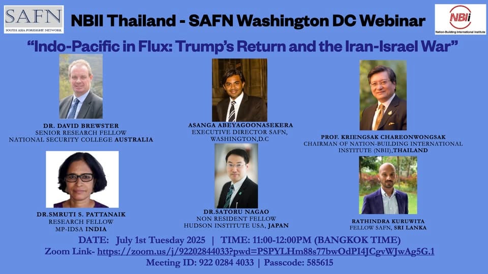 SAFN-NBII webinar on "Indo-Pacific in Flux: Trump’s Return and the Iran-Israel War"